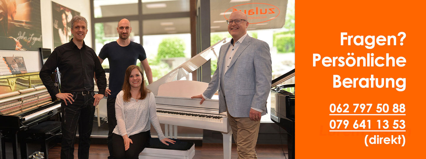 Ab sofort öffnen wir unsere Türen von Montag bis Samstag ausschliesslich nach vorheriger Terminvereinbarung. Warum? Ganz einfach - wir möchten sicherstellen, dass wir uns voll und ganz auf Ihre individuellen Bedürfnisse konzentrieren können. Durch die Terminvereinbarung erhalten Sie die bestmögliche Beratung und Unterstützung auf der Suche nach Ihrem Tasteninstrument - egal ob Miete eines Einsteiger-Modells oder Wahl/Wechsel auf ein hochwertiges Instrument für langfristige Spielfreude.